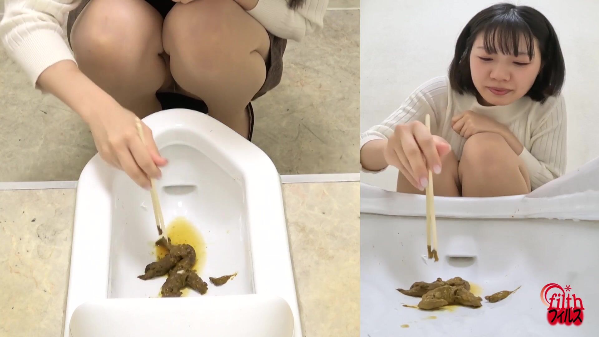We found a woman who looked like she needed to poop and observed her thoroughly. Then she started to behave strangely. We followed her and found out that it was a public toilet. We looked closely to see her pooping, but her appearance was quite different from what we had imagined. The woman straddled the toilet, then peered out from between her legs and stared at her own anus. Looking over her buttocks, it looked like a baby was giving birth. The feces that came out of her anus slowly passed next to her face. The contrast between the woman's expression of straining and her anus pulsating desperately was indescribably sensual. After she had finished pooping, the woman carefully observed her own poop. She smelled it, touched it, and some even started to collect it. Why are they so obsessed with poop? The mystery only deepens.