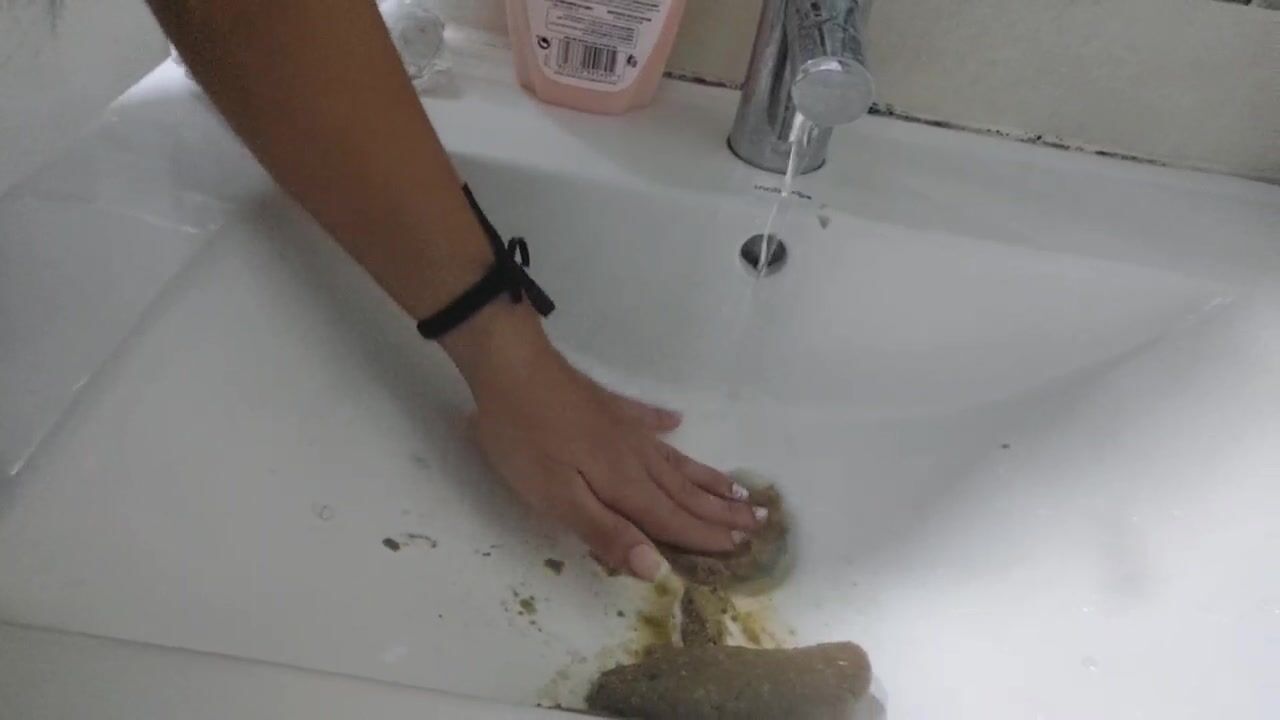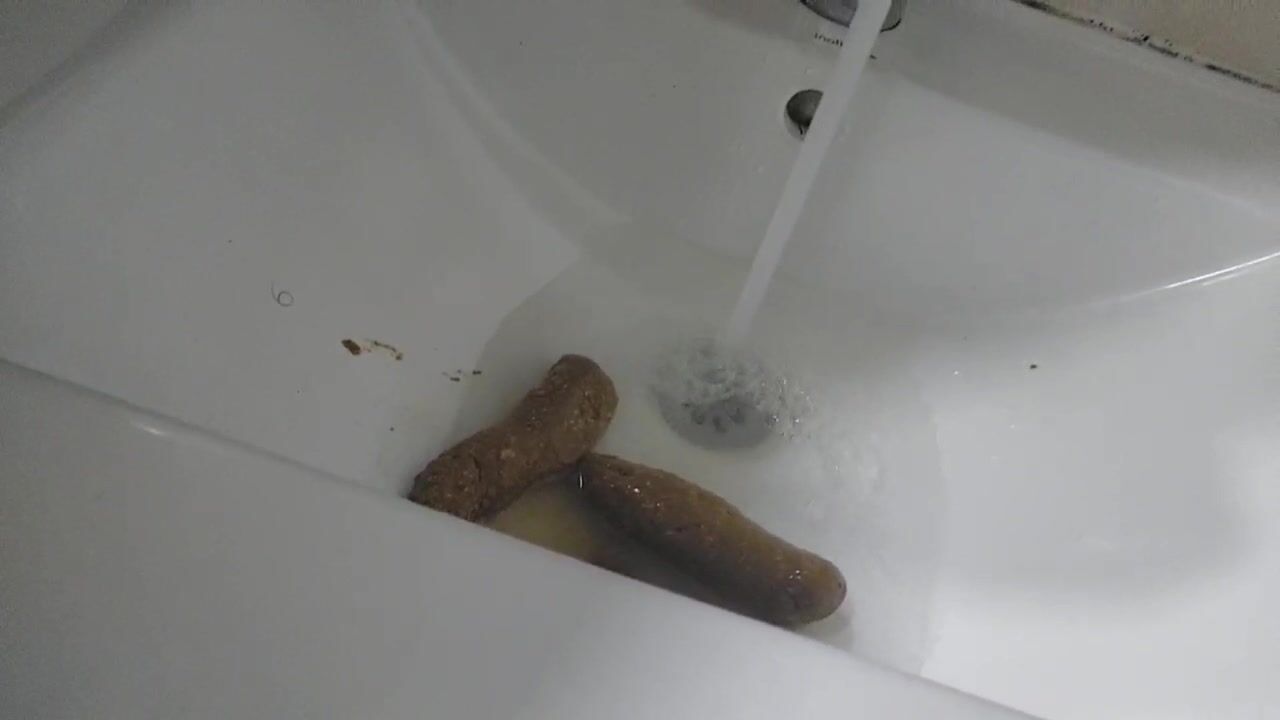 I have to shit, I'm at my friends house, I go into the bathroom and realize that the toilet can't be flushed, so I have to shit in the sink, I want you to look at me, I start pushing big chunks of poop in the sink. sink, clean myself up, and let the shit out of the sink.