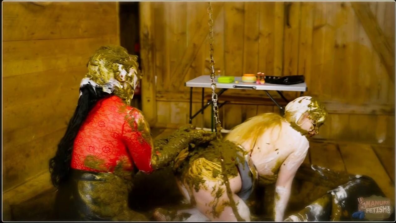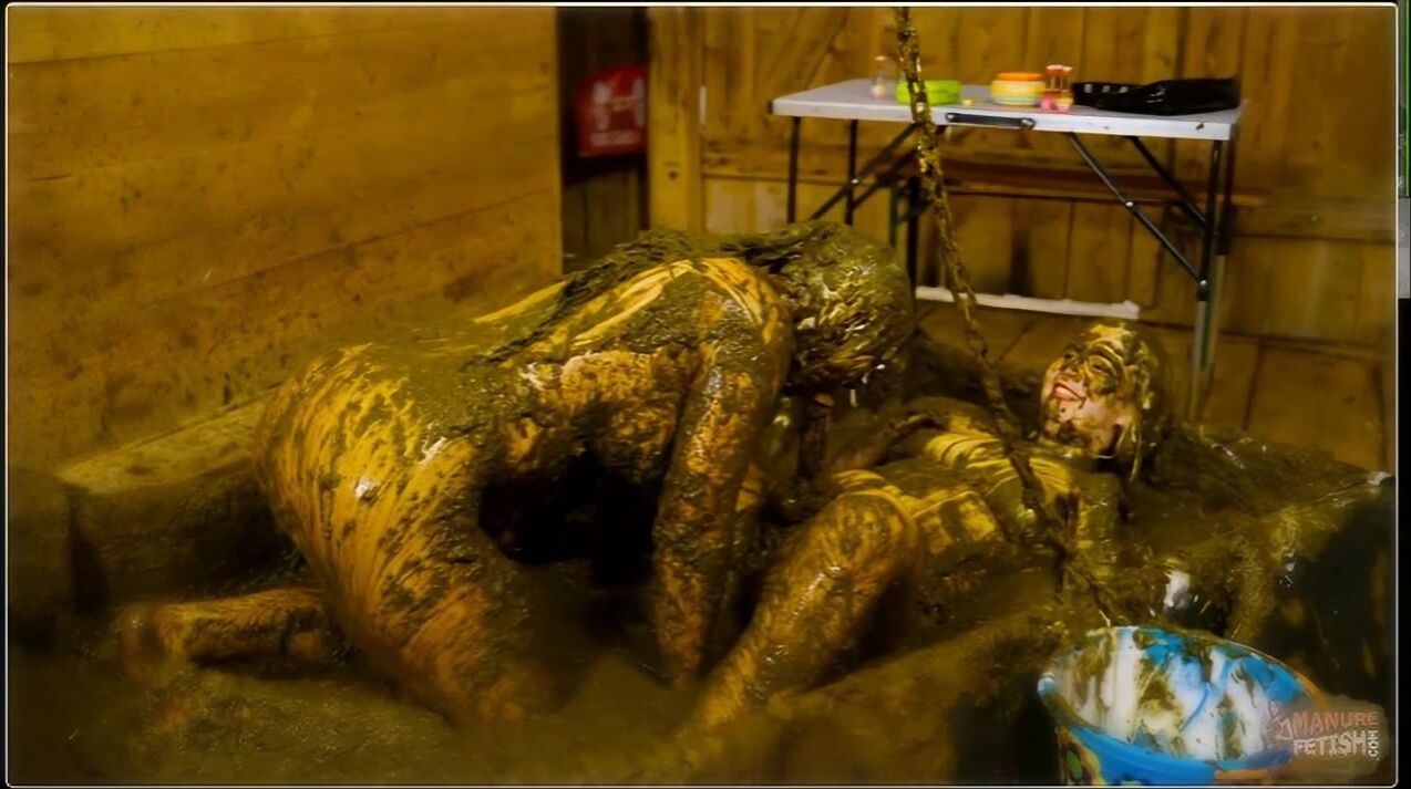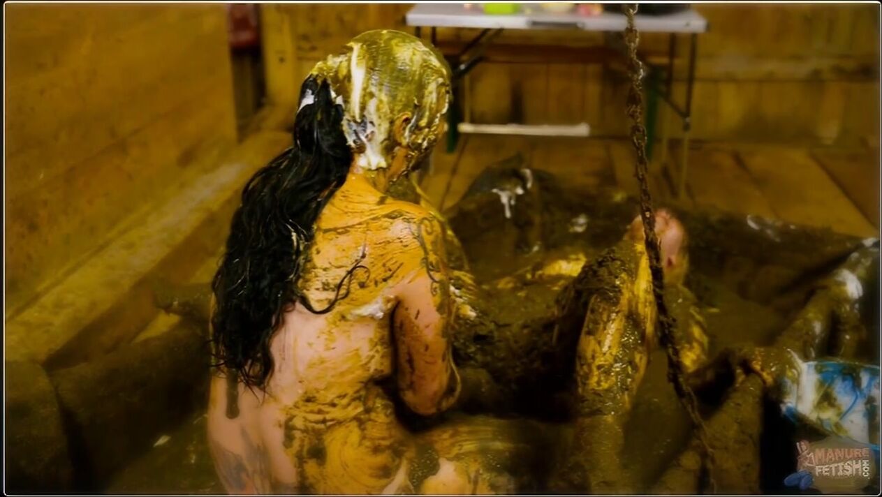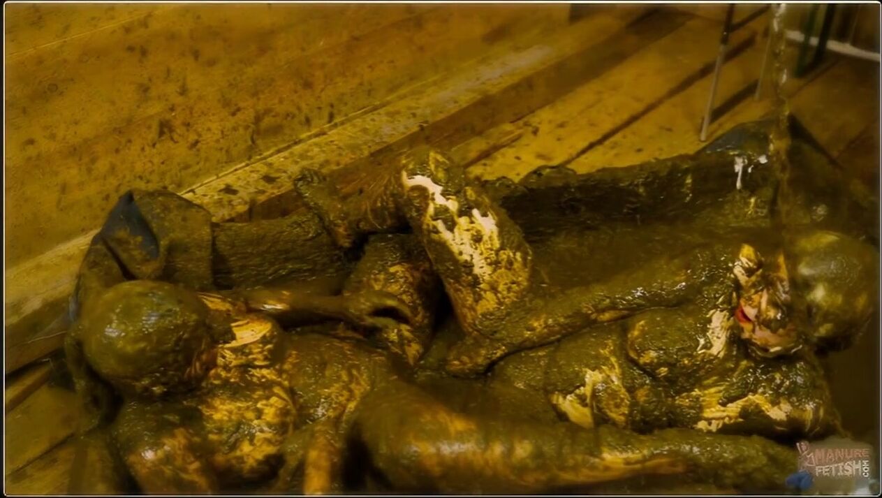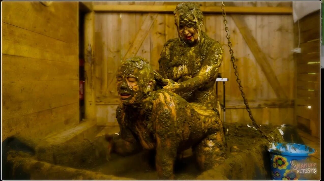 Betty and Lyndra were heading to a club but wanted to pre-drink a bit. So they both had a drink, but Lyndra had had her eye on Betty for a long time, so she asked Betty if she wanted to have some fun. Betty said yes, Lyndra's eyes beamed with joy and the two of them made their way to the pool. There was a bucket full of white slime and the two of them started playing with it and rubbing it on each other. They threw each other off and laughed. Then Lyndra pulled the chain and the cow dung started flowing. Betty and Lyndra soaked their tops and then helped each other undress. After both of them had covered themselves in cow dung, Lyndra grabbed the strapon and Betty started to suck it with pleasure. Afterwards, Lyndra Lynn fucked Betty first in doggy style before Betty rode Lyndra in cowgirl. Then the double dildo was used in the scissor position. The two pushed it in and fucked each other, also without a dildo, where they both reached their climax. Lyndra fingered Betty until a hot golden shower came and Lyndra didn't miss it and enjoyed a good sip of it. At the end they both poured cow dung from the bucket over each other while they got dressed again and sat down on the bench together again...