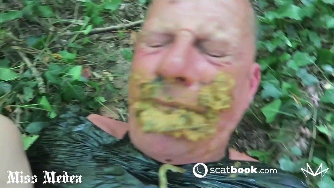 I kidnapped a guy in the park and dragged him into the forest. Tied up & with a gag in his mouth he can't go anywhere now. First, I slap him hard in the face and spit on him. I pull on his nipples and enjoy how he suffers. Then I wrap him in bondage foil so that he really can't run away.... I put my victim on the ground and take my pants and shoes off. I have to piss urgently, so now his mouth must serve as a toilet. I make him drink all my piss. Then I stuff my foot into his mouth and tell him that he must eat all my shit next. I threaten to leave him alone in the forest in the bondage foil if he doesn't swallow it all. Then I squat over his face and shit a huge load into his mouth. It is quite amusing for me how the flies attack him and make the task even more difficult for him... Whenever the poop falls out of his mouth, I put it back in, even if it is then mixed with leaves and branches. I show no mercy for my toilet today. Everything has to be swallowed!...