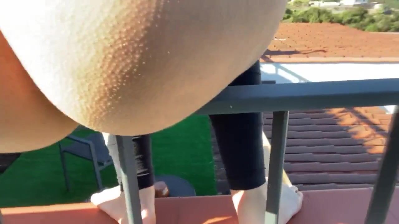 First day on Tenerife and my friend locked me out on the Balcony of our AirBnb house.. He is under the shower, cannot here me and I’m badly have to shit… No other chance to shit on the balcony – or down the balcony. So you can see me on balcony railing, sitting there and shitting down the house in the garden… my Shit falls down 5 meters and end up on the walkingpath of our AirBnb garden… But I had no other chance! I’m also showing you my ass, pussy, from the back and talking nicely to you (in English)