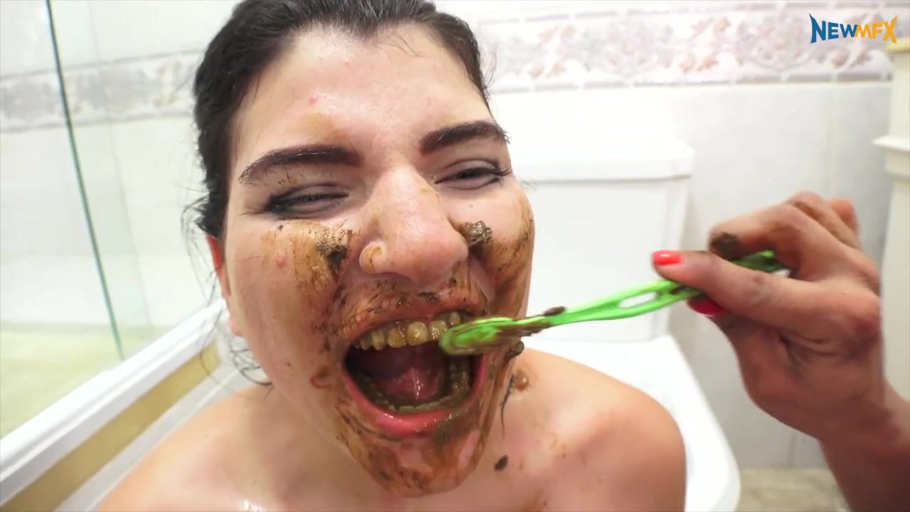 Alessandra Marques is brushing her teeth when Bruna enters the bathroom, Bruna says good morning and Alessandra almost vomit, Bruna has a smell of shit into her mouth. Alessandra forced Bruna to brush the the but the toothpaste is not enough and Alessandra decided to forced Bruna to brush her teeth with piss and shit...
