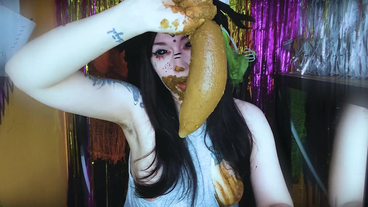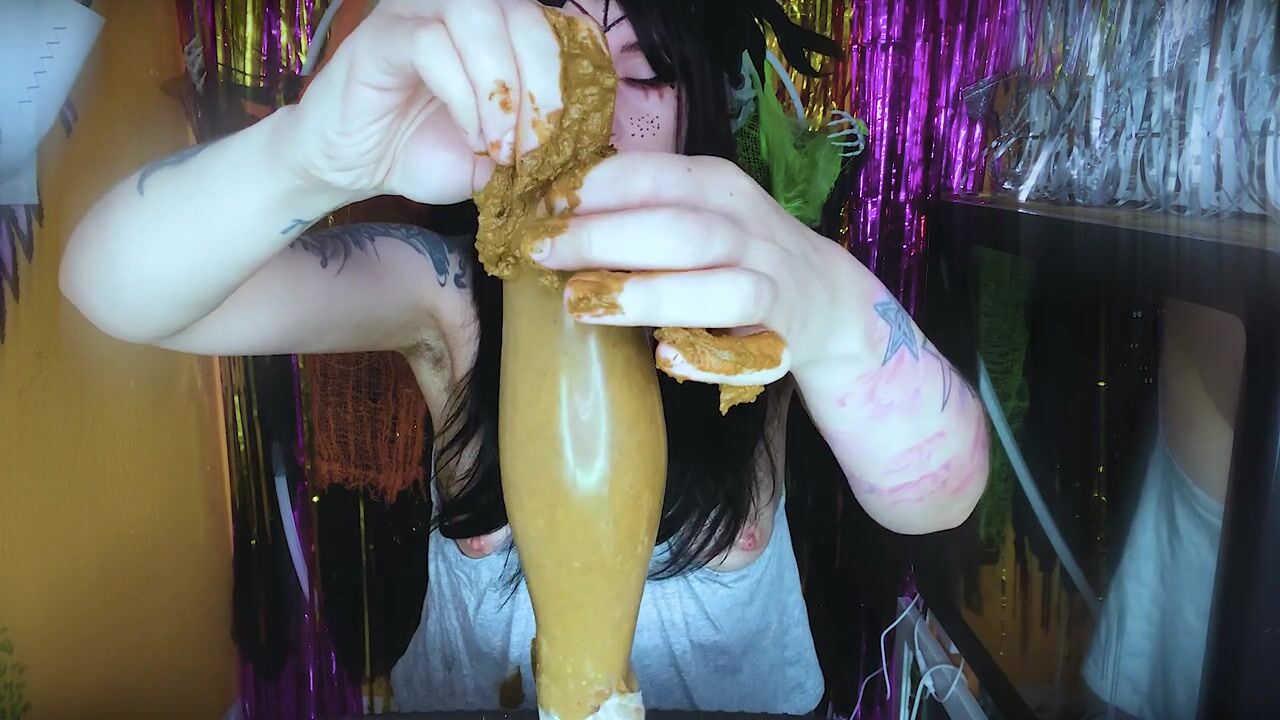 A huge condom stuffed full of fresh shit. I will suck and swallow it as hard as possible. I’ll smear it all over my face and fill my mouth with this fragrant shit. My pussy is incredibly wet, my dirty hole is throbbing and a bunch of still slightly warm shit is gently placed in my mouth to dissolve in my mouth and give me an unforgettable tart nut-coffee taste of female feces. Oh my God!...