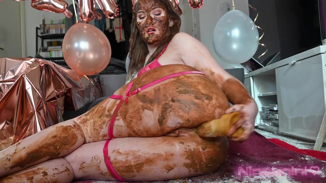 I will introduce you to the ingredients briefly, then start working on my shitty cupcake recipe. In the meantime, I will lay my huge turd, which I will suck languidly, and which I will use to make a shit mask on my face and hair which will remain until the end of the video. Don't worry, there will be plenty left for our cupcakes! ?? The naughty that I am will not be able to help flouring my ass, face and spilling milk everywhere... For your greatest happiness. ? The 4 large cupcakes are in the moulds, ready to be baked! I put them in the oven and during the cooking time I will play a little with my big ass. I cover it with shit to come and shove my big dildo in my ass, I even fist myself at one point! ? I light the candles and I'm going to put them out by pissing on them! They will thus have a little taste of piss when I taste them. So I do a huge and very long pee that will allow me to successfully extinguish all my birthday candles! ?? I unmold them and then begin the tasting. I wil