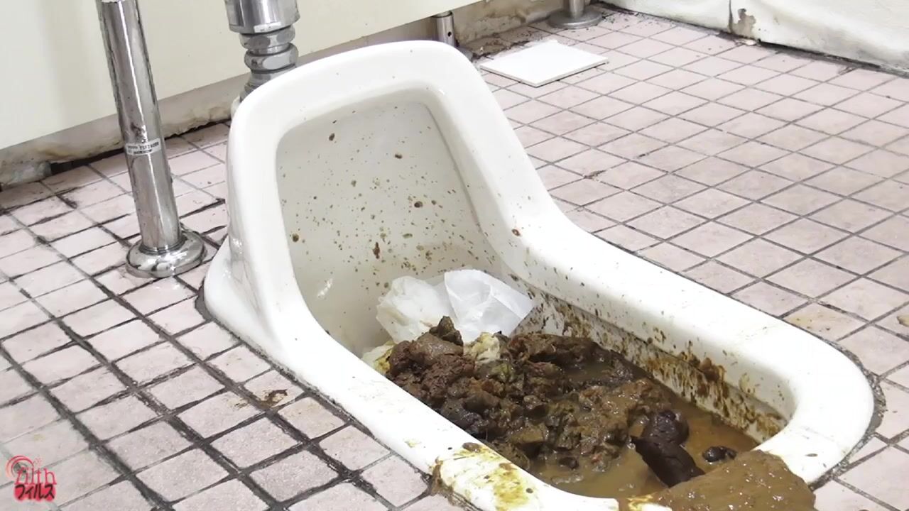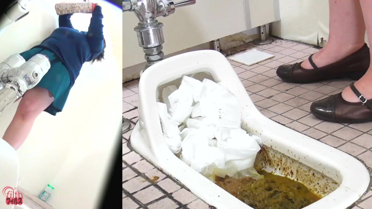 DLFF-260 02 Clogged public toilet peeping. Triple screen view