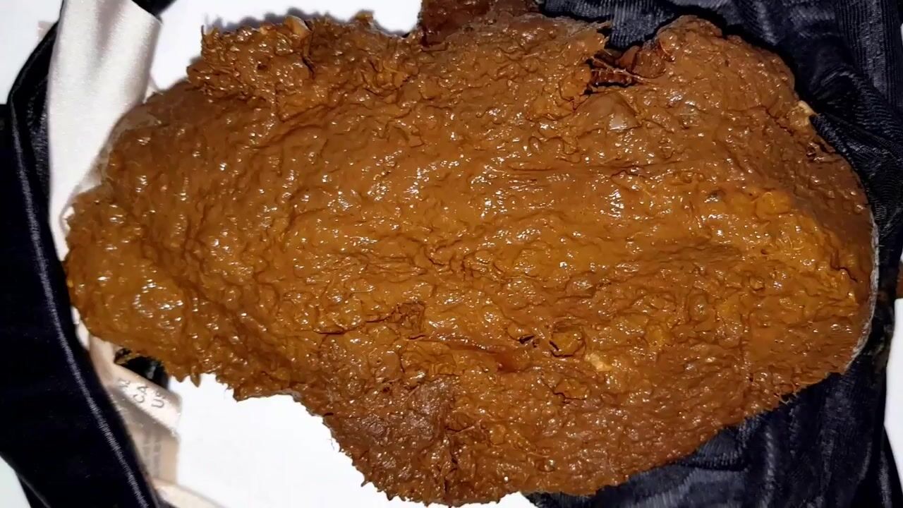 Goddess is pooping in her new black satin panties big poop and as always she is getting excited and rubbing her pussy bratty and farting stinky into your face...