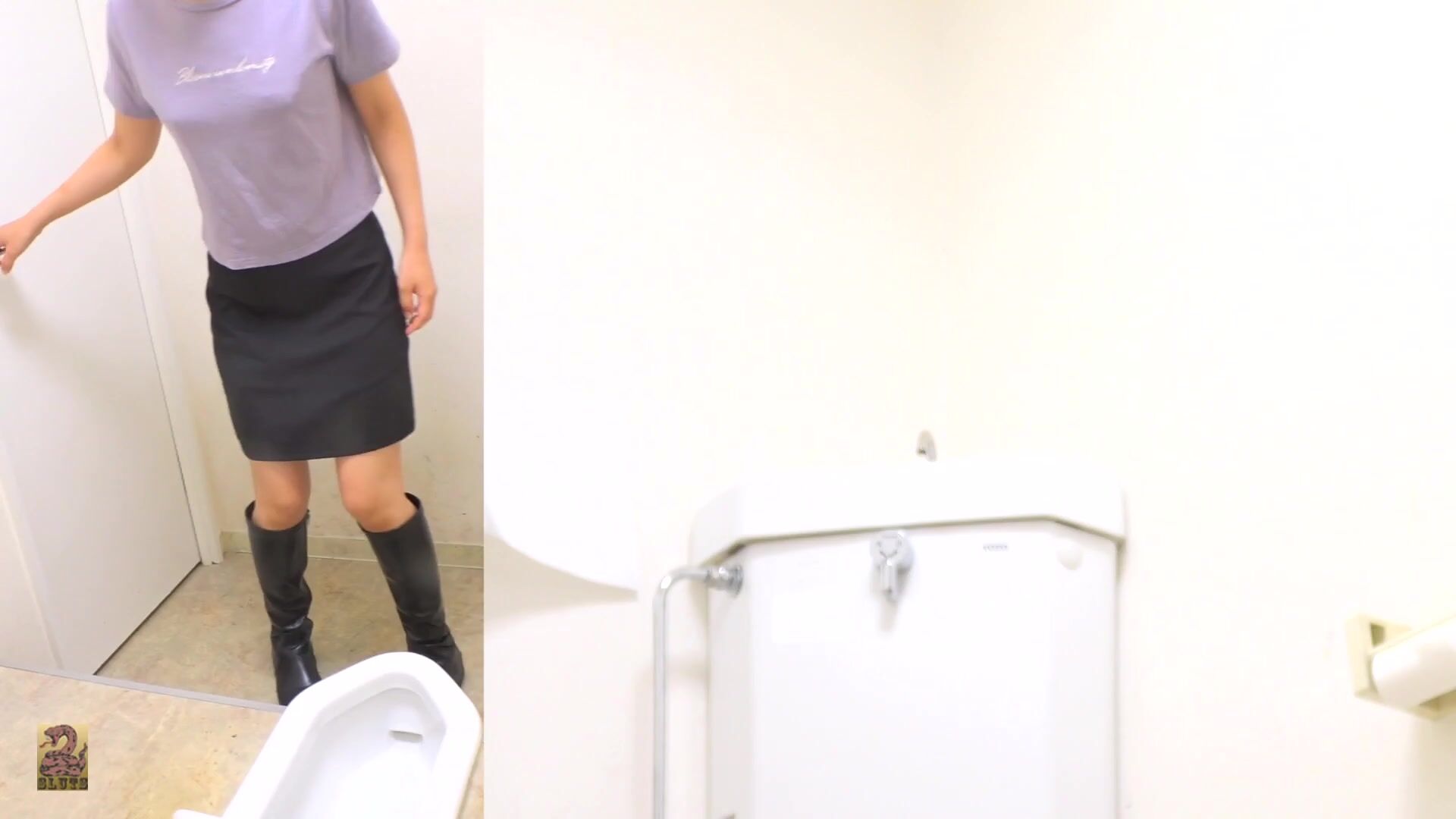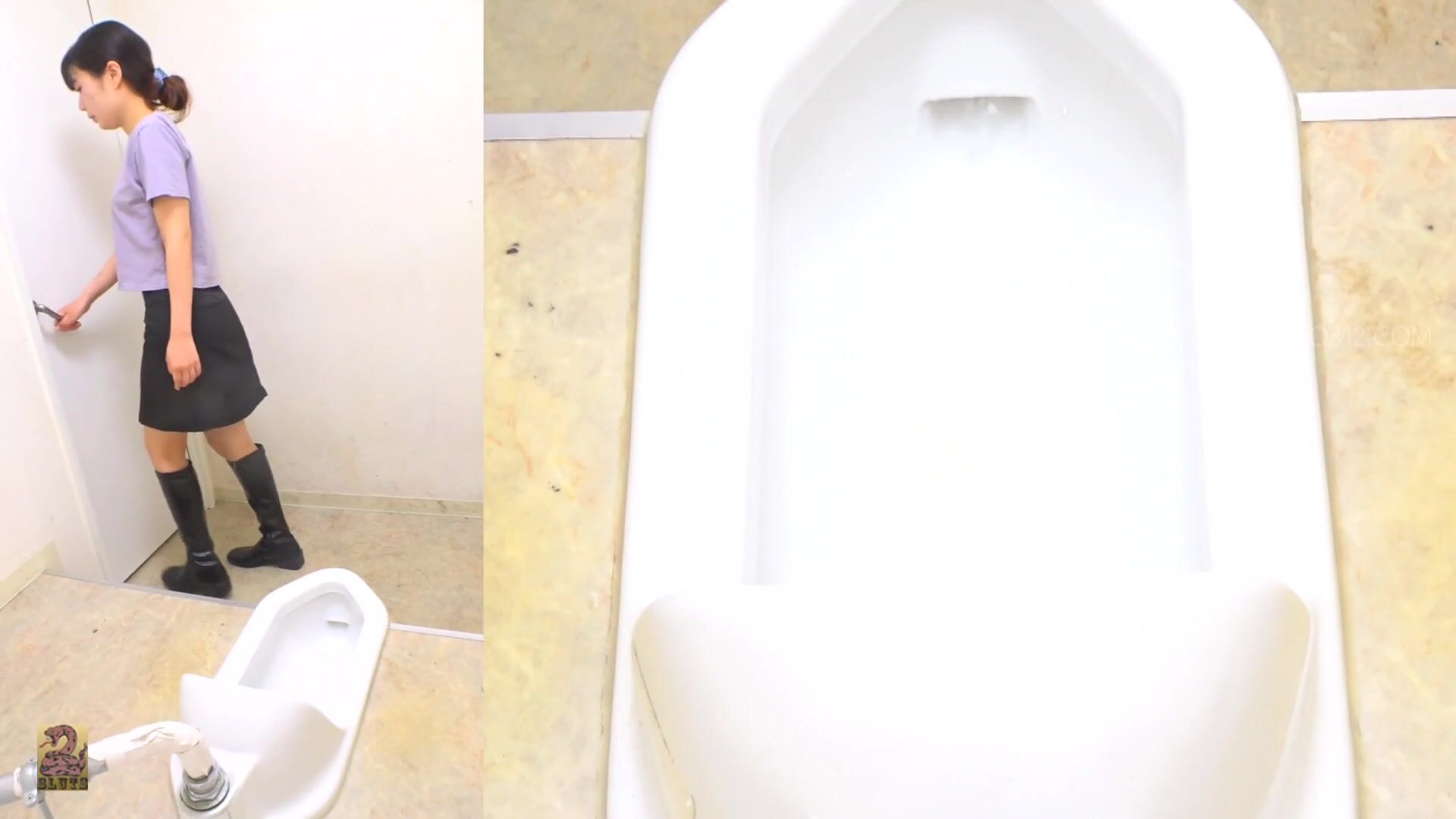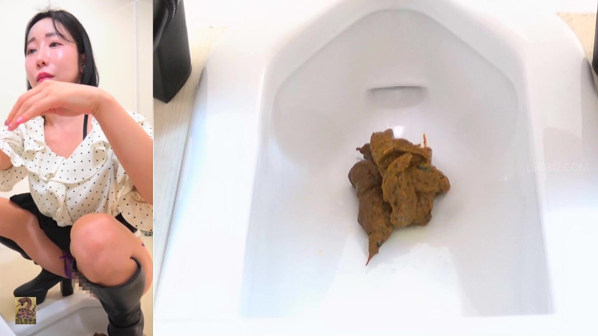 SR097 01 6 Cameras captured women wearing long boots and o-back panties doing farts and poops in the toilet. (Split screen view)