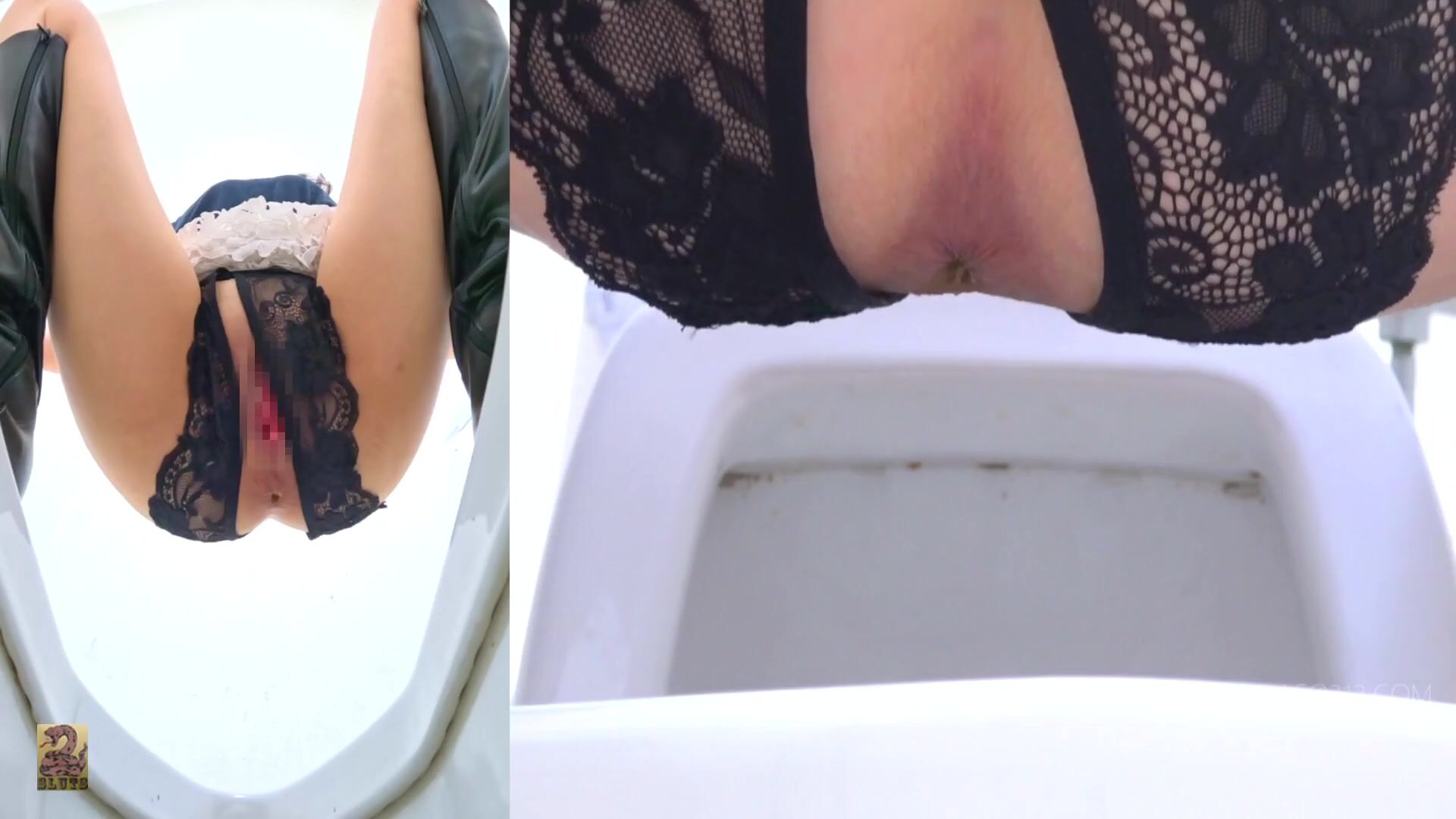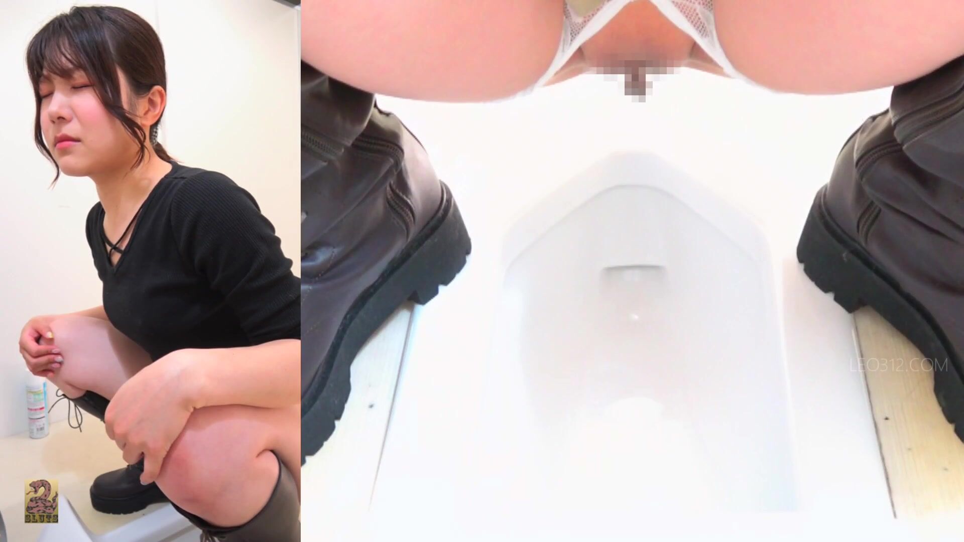 SR097 07 6 Cameras captured women wearing long boots and o-back panties doing farts and poops in the toilet. (Split screen view)