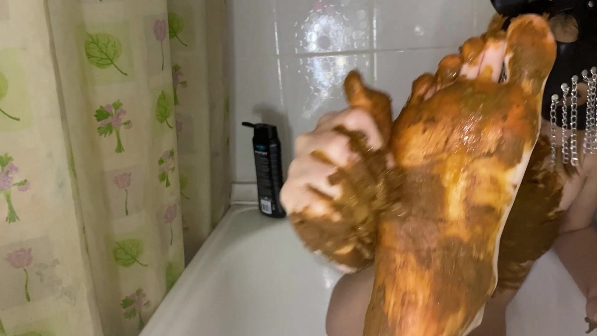I chew on a piece of shit and smear myself in a sexy mask, ass, feet, face all in shit...