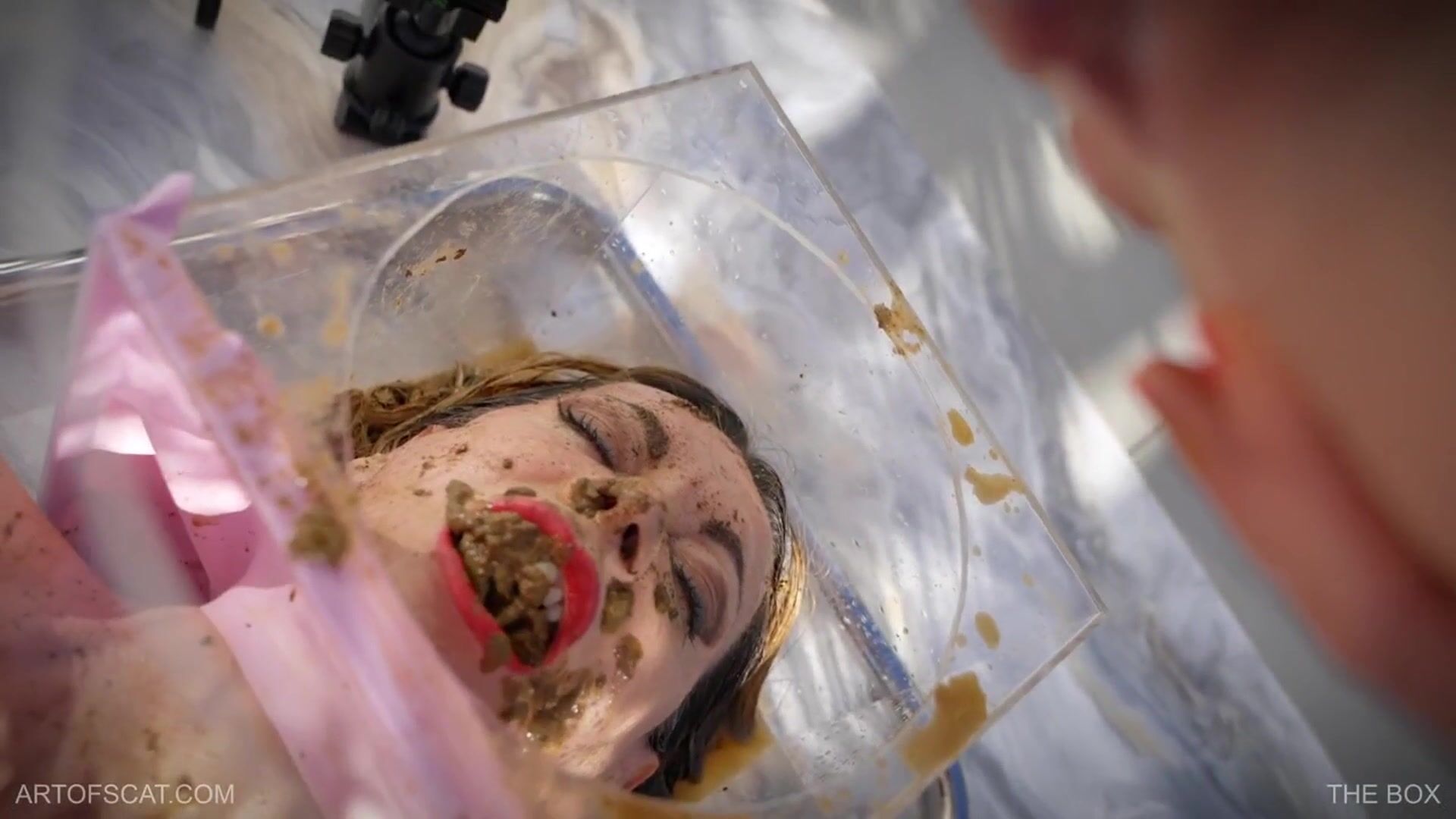 I had been edging for almost a month for this movie - you know we had a little pause shooting scat movies, so I was very excited about starting them again. I had this idea about a plexiglass box with a latex seal on one side that goes around my neck to keep all the urine and feces inside. As constant stimulation during the session, I had attached an electrode clamp to my clit, the other electrode went into my pussy, and there was a spreader in my mouth as well to keep it open all the time. At least that was the plan. But I fucked it up right at the beginning.While I was waiting for Nazryana to finish her enema and start to shit on me, I thought it would be a good idea to turn on the Folsom Max device to make everything ready before starting the shooting. After a few minutes of waiting and edging, the orgasm started suddenly and unexpectedly. I quickly turned off one of the buttons on the device but I still felt the electro stimulation. I had turned off the wrong button lol, so I turned off the other button and the electrons stopped streaming into my clit, but the orgasm still continued. I panicked and torn the clamp from my clit, but the orgasm still didn't stop for a few minutes. It was a record-long orgasm. Followed by the evil, unavoidable post orgasm clarity.Nazryana came to start the shooting right when my orgasm ended, and I said to myself 'what the hell am I doing here, I don't want her shit anymore'. I told her what happened, she laughed at me because she knew that I had lost all of my libido and perversion because of the orgasm. So in the end I had to endure the urine and feces storm in the box without any desire or interest lol. To top it all off, almost all the enema fluid and urine went into my nose, and my eyes. My spreader-opened mouth was also full so I couldn't breathe at some point, we had to stop for a while.I removed the mouth spreader but I still couldn't see anything because I kept my eyes closed to prevent the liquid feces from getting into my eyes, and my nose and ear were also full of urine and feces. Nevertheless, the very next day found me masturbating to this movie already...