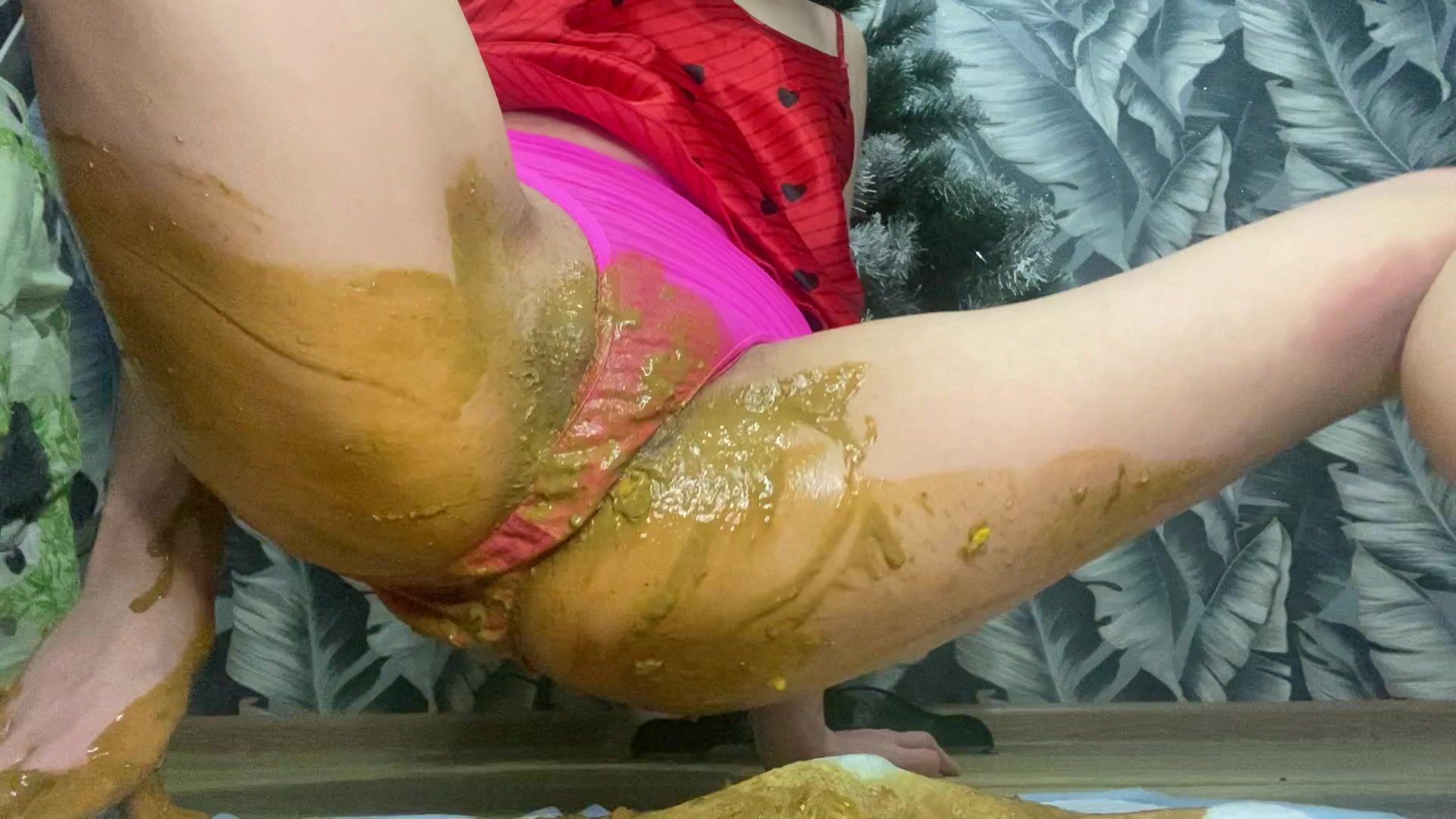 Liquid diarrhea in pink panties and smearing...