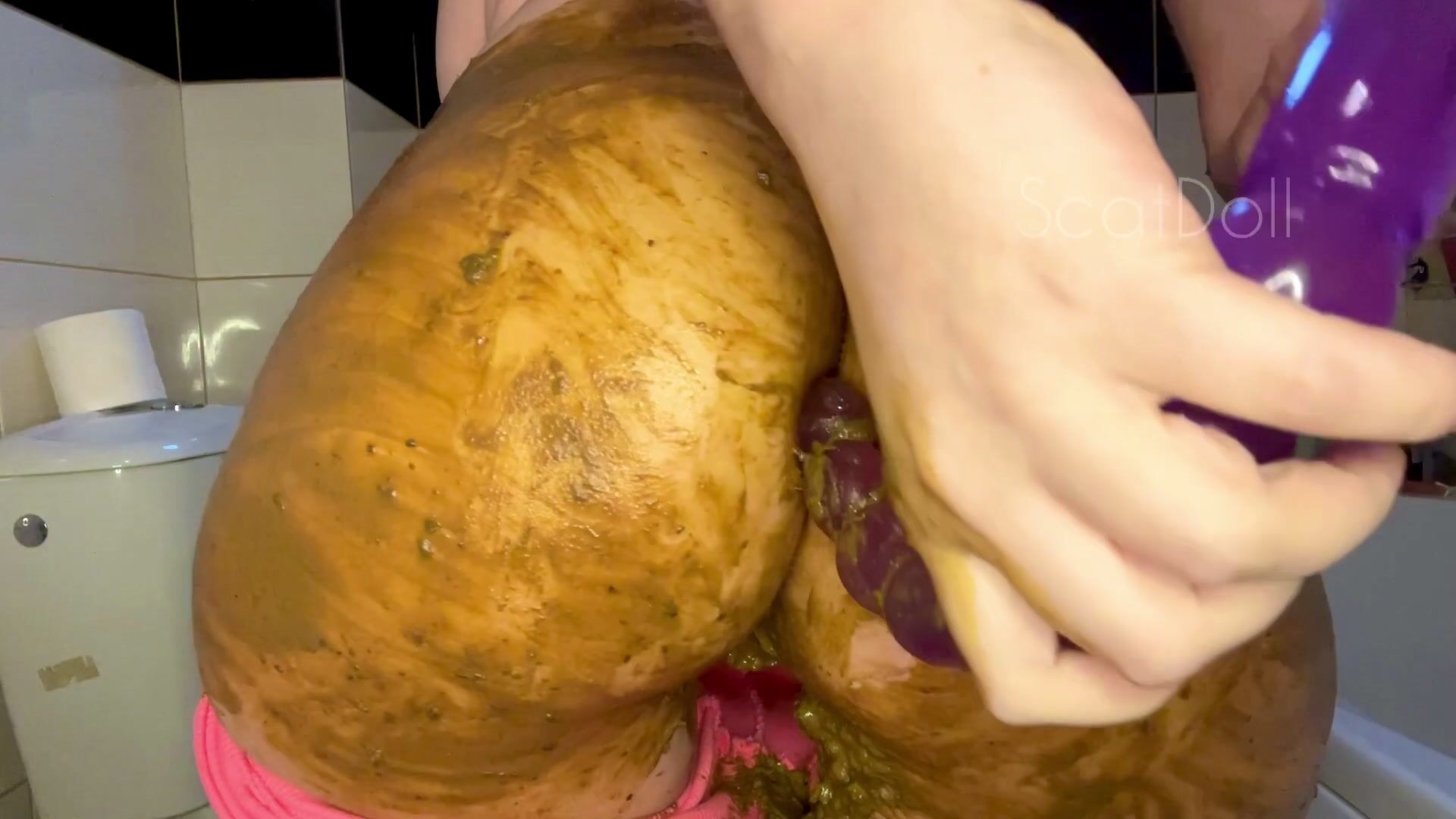 After holding my poop for two days and my belly started to feel like it's gonna explode, I finally release my big load in my pink leggings. The feeling of my warm poop makes me so horny, so I'm smearing it all over my ass, followed by a Dirty Anal ?