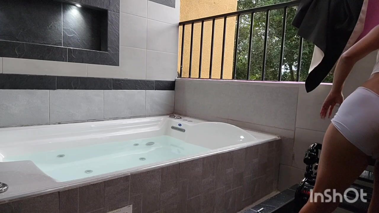 This afternoon I went to spend some time in the jacuzzi at my friend's house and when I started smoking my cigarette I wanted to get into the water but it was a little cold and it made me want to carry something that I couldn't resist getting dirty my fucking white pantyhose