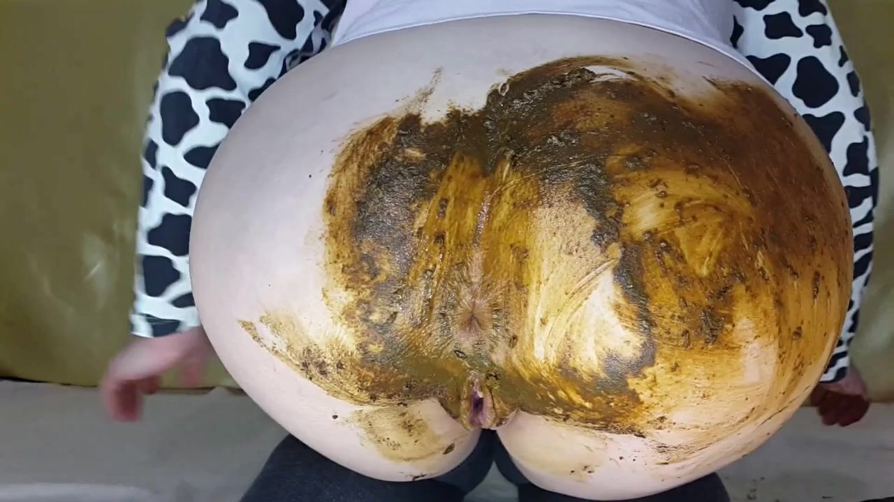 During the rest at home I decided to shit into my white panties. I piss in my panties and shit them,show you close. I take off my panties and fuck my ass with my black dildo and a lot of lubricant, small turds keep coming out. I turn around and then I fuck my pussy with a dirty toy. OMG it seems I have wet the battery compartment and now the vibration mode does not work! I take shit from the floor and from panties. I want to smear that all on the ass pussy belly and tits mmm...