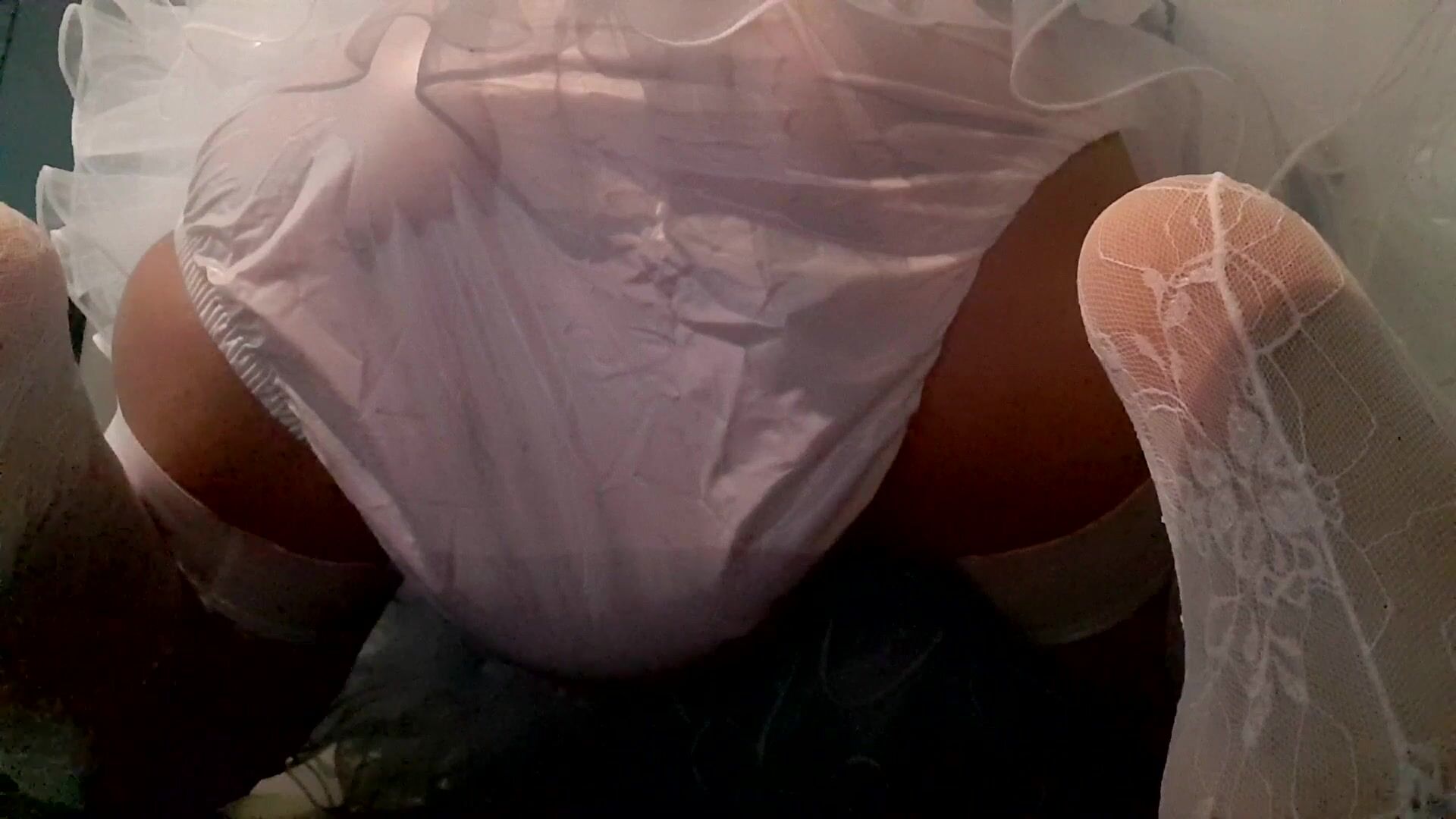 Bratty toddler girl is pooping huge shit and peeing a lot in her plastic panties, she is teasing you with her ass and wanting you load a ot of sperma on her messy panties;)