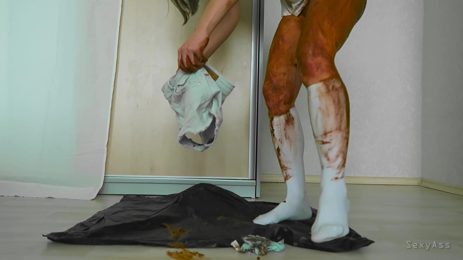 I was missing something dirty and sensual, then I felt horny and decided to play in shit again. In this video I'm wearing short jeans and white stocks. You will see how I poop in my pants, how I smear shit over my face, legs, ass, pussy, how I play my pussy with shitty hands. And for sure see me tasting my shitty fingers mhmm. Tell me if you want more stuff from me! :) xoxo
